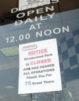 "Wonderland Park is closed and has ceased all operations. Thank you for 75 great years," read the sign, which was accompanied by another sign explaining how to redeem winning tickets.