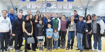 Family and friends turned out to watch former Winthrop High basketball star Dino Mallios and his St. Anselm College team play Bentley University Saturday in Waltham. Mallios, starting point guard, put on a great all-around show in front of the Winthrop contingent, contributing 12 points, five rebounds, four assists, and two steals to lead St. Anselm to an 81-75 upset of the FalÂcons. Dino and his supporters are pictured after the game.