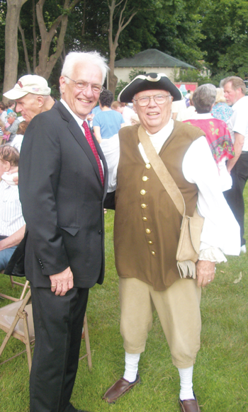 News Strawberry Festival by Transcript Staff • June 22, 2012 • 0 Comments The Winthrop Historical and Improvement Association held their annual Strawberry Festival at the Deane Winthrop House on Tuesday. Dave Hubbard (right) greets Town Council President Peter Gill during the sold out affair.