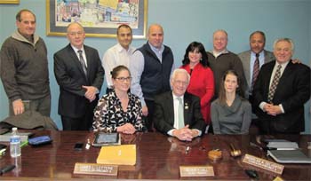 Standing, from left, are Councilors Craig Mael, Paul Varone, Rich Boyajian, James Letterie, Linda