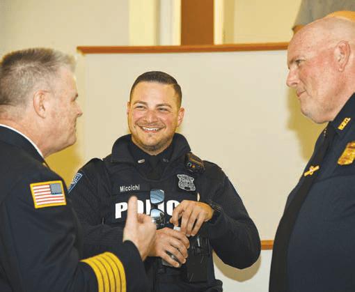 News First Responders Mass At St. Michael the Archangel by Transcript Staff • November 3, 2022 • 0 Comments Fire Chief Wiley, Officer Miccichi, and Sgt. Delehanty during St. Michael the Archangel’s First Responders Mass on Oct. 30. Representative Jeff Turco and Melissa Turco with Chief Delehanty.