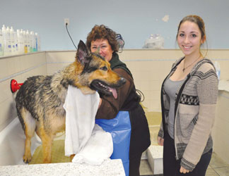“It’s great to be able to wash your dog, make a mess and have someone else clean up,†said Maureen Hartmann, who brought in her German shepherd dog to bathe.